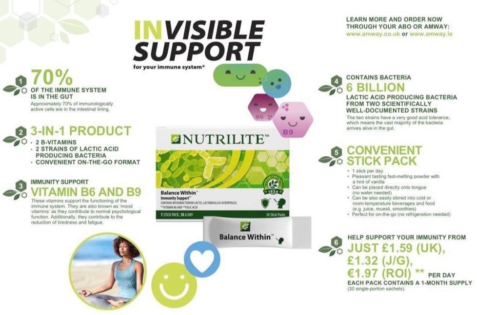 Nutriliteâ„¢ Balance Within (Order No. 120571)Food supplement that offers extra support to your immune system with vitamin B6 and B9 (folic acid) to help keep you feeling good.